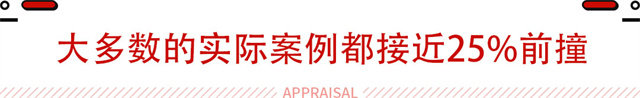 大多数新车在25%撞击的得分,是要明显低于100%正撞和侧撞的。往往你看一台车的综合评价不低,但在每一个子项的评分里,最低分的往往就是25%撞击分。