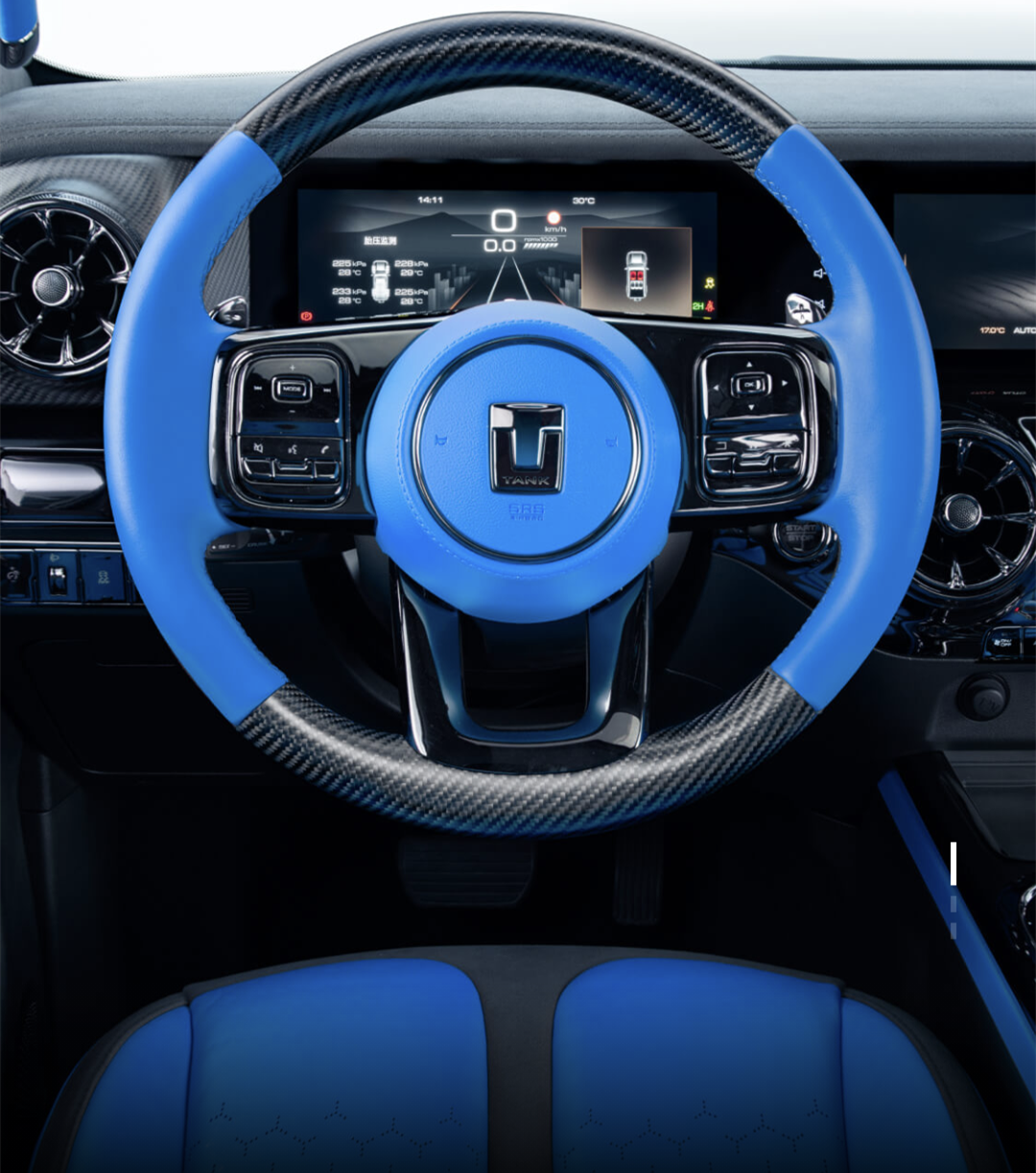 驾驶模式从普通版的4种增加到了9种,四驱系统具备分时四驱、前后差速锁、全地形反馈、蠕行模式、坦克掉头等功能,还能显示更多的越野信息数据。
