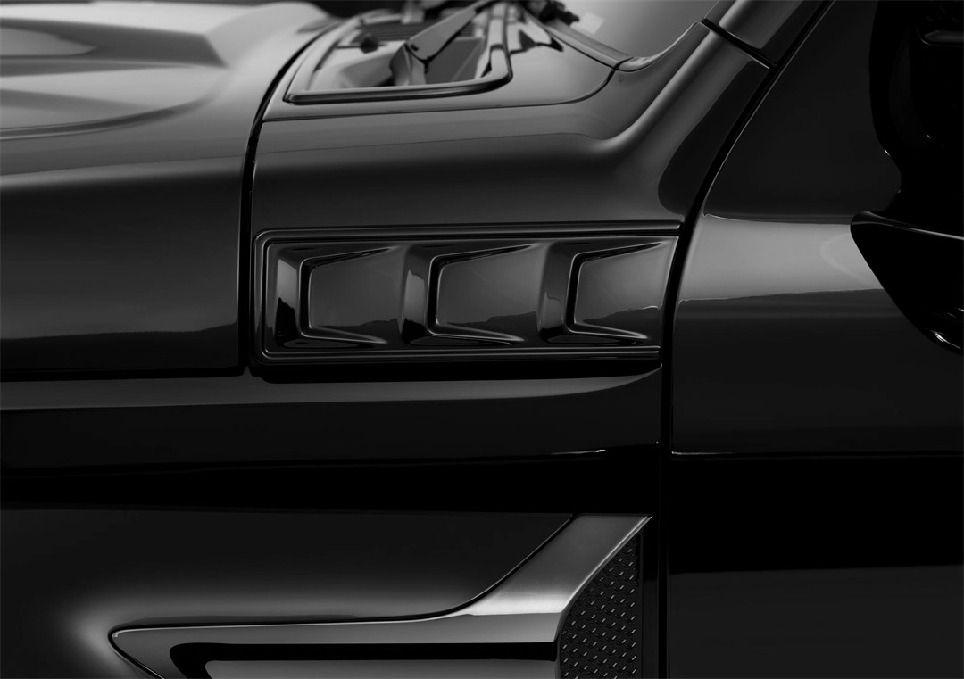 引擎盖隆起的样式倒是没变,但进气口只是一个装饰,侧面翼子板和机盖上的散热口造型有了调整。