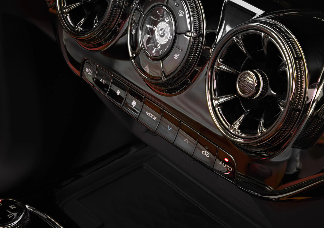 座椅和门板的真皮还进行了渐变蜂窝状的打孔处理,车内的银色电镀装饰被钛黑色取代,与车身颜色相呼应,把黑化风格做到底。