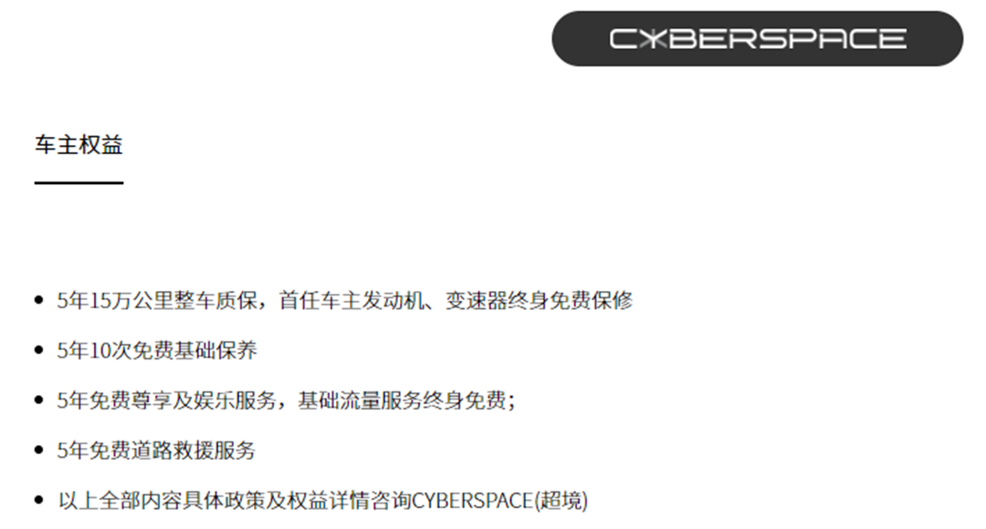 赛博骑士目前已经开启了预定,预售价在33-35万元左右,比赛博坦克的30.80万要贵一些,交付时间在2023年6月底。如果是赛博坦克车主购买,还会有专属的购车权益,具体如下: