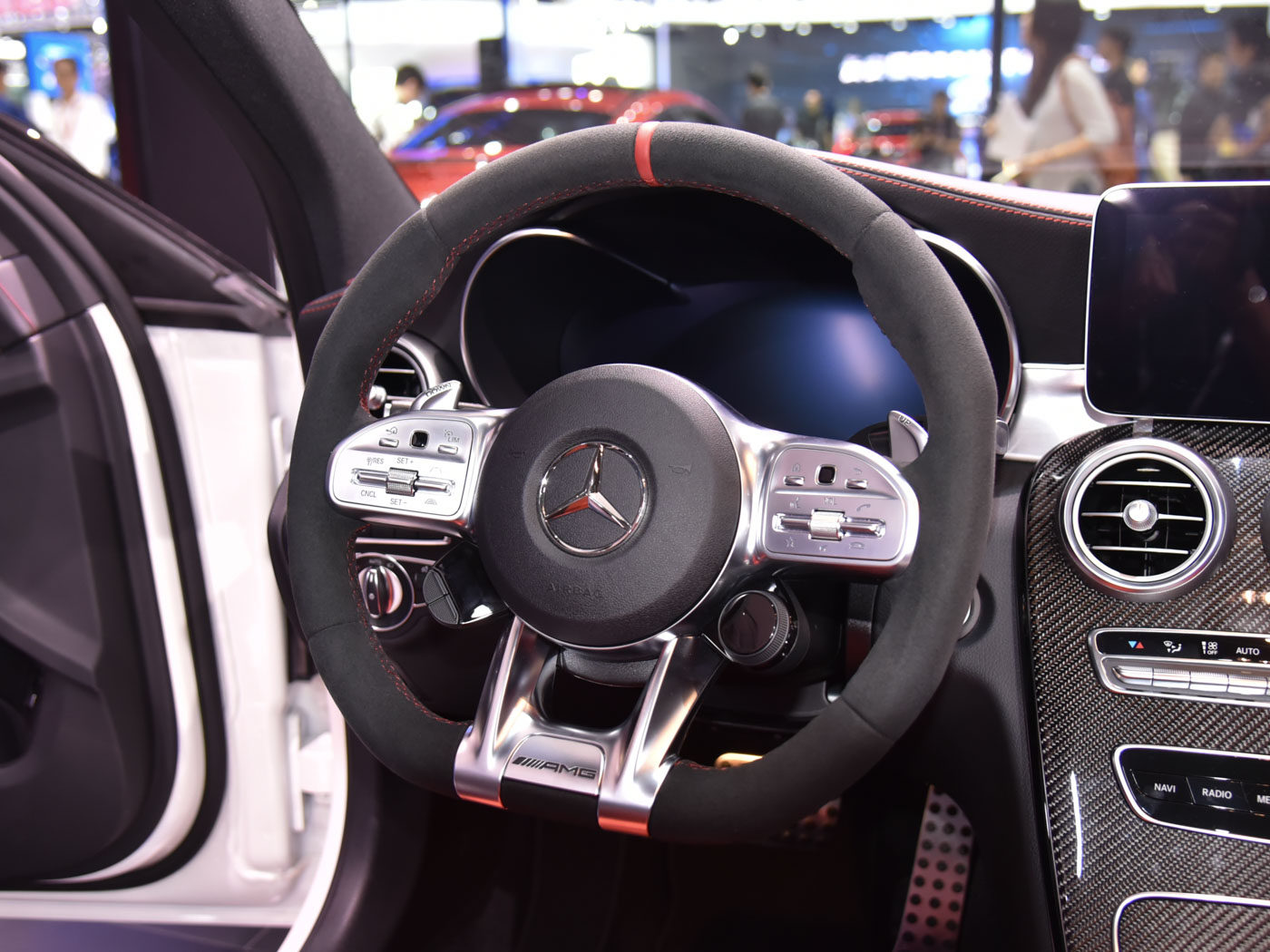 新车同样没有在内饰方面进行改动调整,依旧配备12.3英寸的全液晶仪表和10.25英寸的悬浮式中控屏幕以及AMG风格的三辐式多功能方向盘,碳纤维纹路的中控以及炮筒式空调出风口也仍然存在。