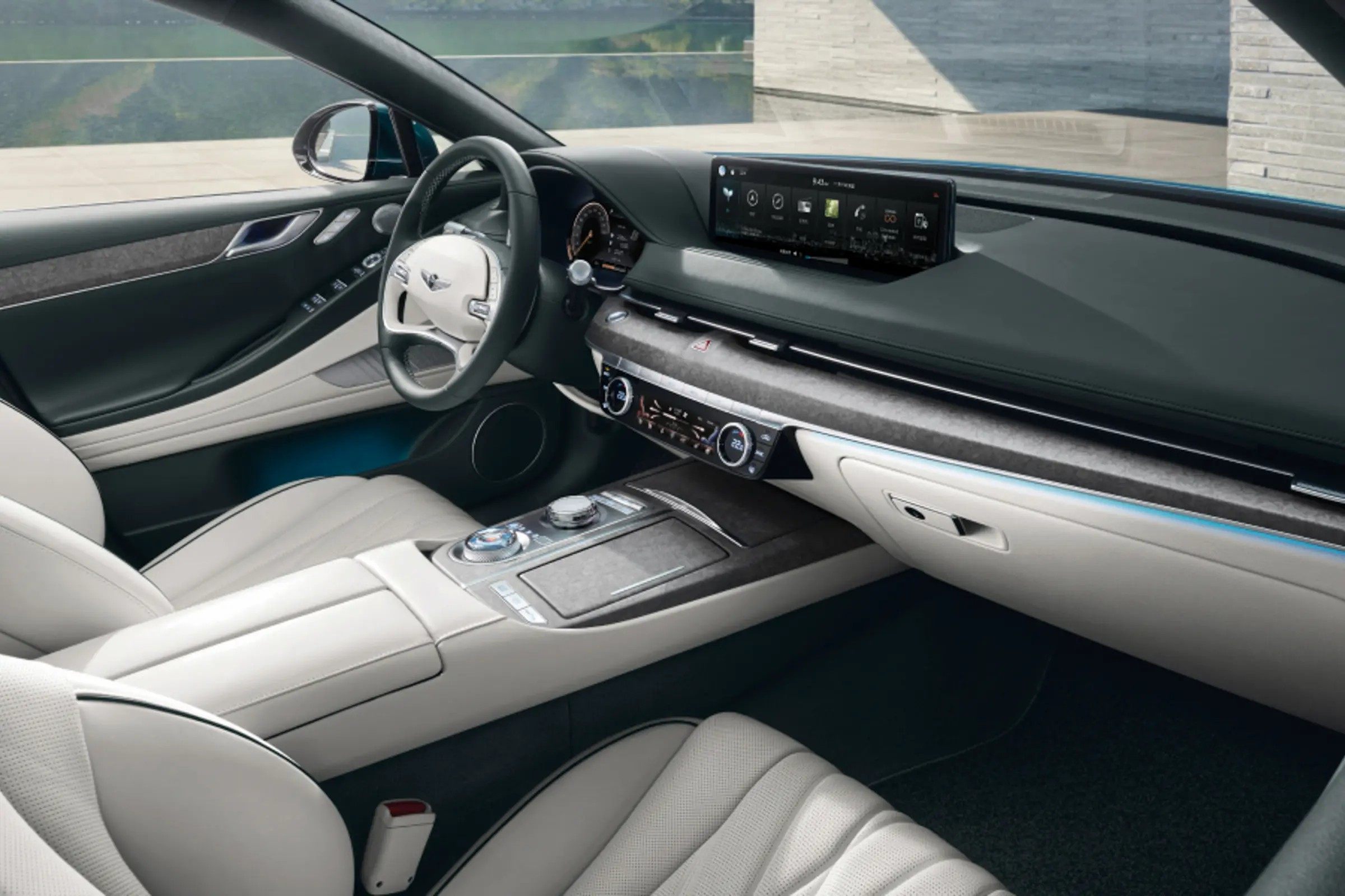 内饰方面,捷尼赛思G80 EV也并没有作出太大幅度的改动,内饰设计同样与燃油车型相差不大,依旧配备14.5英寸悬浮式中控显示屏幕和12.3英寸的液晶仪表盘,加上质感出色的内饰包裹材料和设计布局,豪华氛围不输同级别豪华车型。