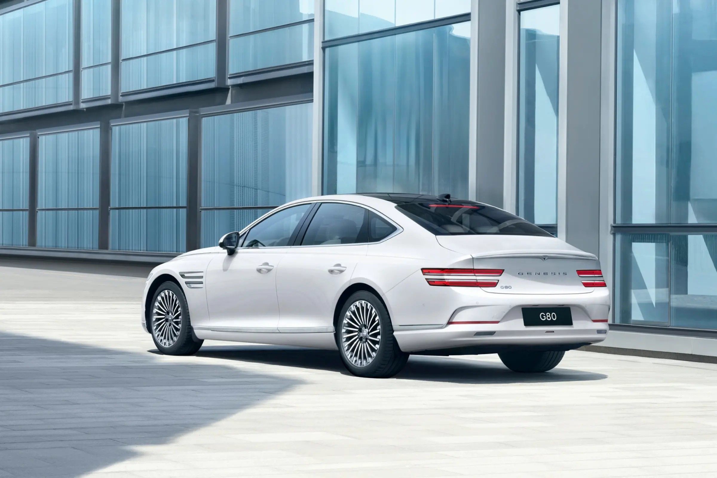捷尼赛思G80上许多熟悉的设计元素也同样在捷尼赛思G80 EV有所保留,例如溜背式设计,标志性的平行线式LED前后灯组、大尺寸密辐式轮圈、尾部小尺寸扰流板以及各种亮色镀铬装饰件,且姿态也和燃油车型一样低矮,运动豪华氛围同样出色。