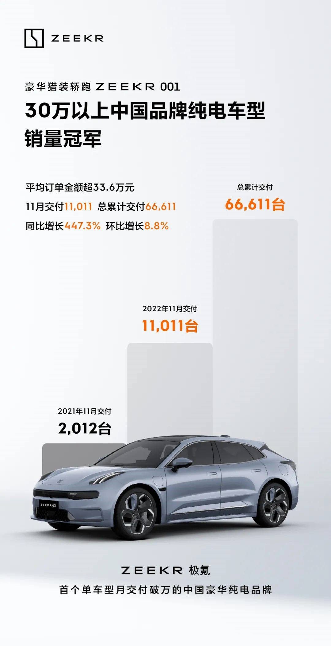 算上11月这次,极氪已经连续两个月的交付量过万了。由于新出的009要在明年1月才会交付,所以这个成绩完全是001个人的表现,可谓一台车撑起了整个品牌的销量,也成为了首个单车型月交付破万的中国豪华纯电品牌。