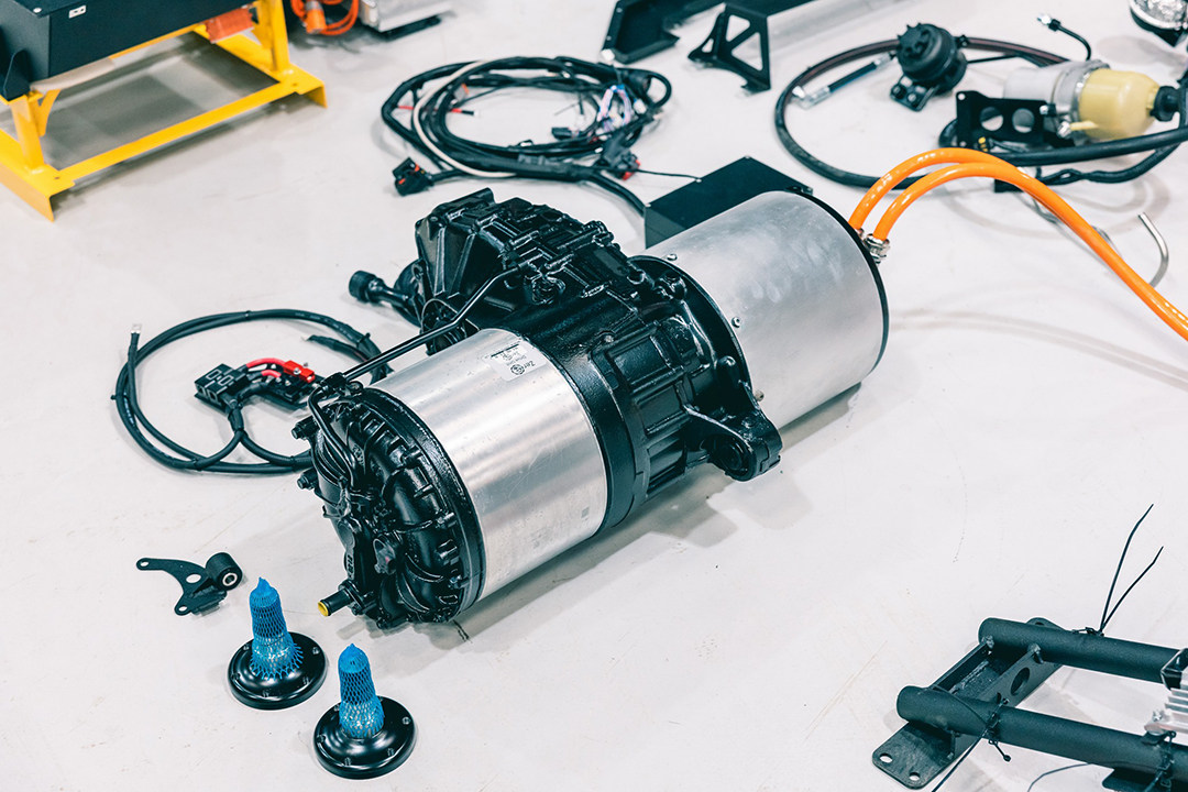 这一套完整的纯电动力系统包含有一台驱动电机、动力电池组和完整的电子管理系统。从硬件和软件层面上看,这一套动力系统的完整度与一台全新的原厂纯电动车型无异。