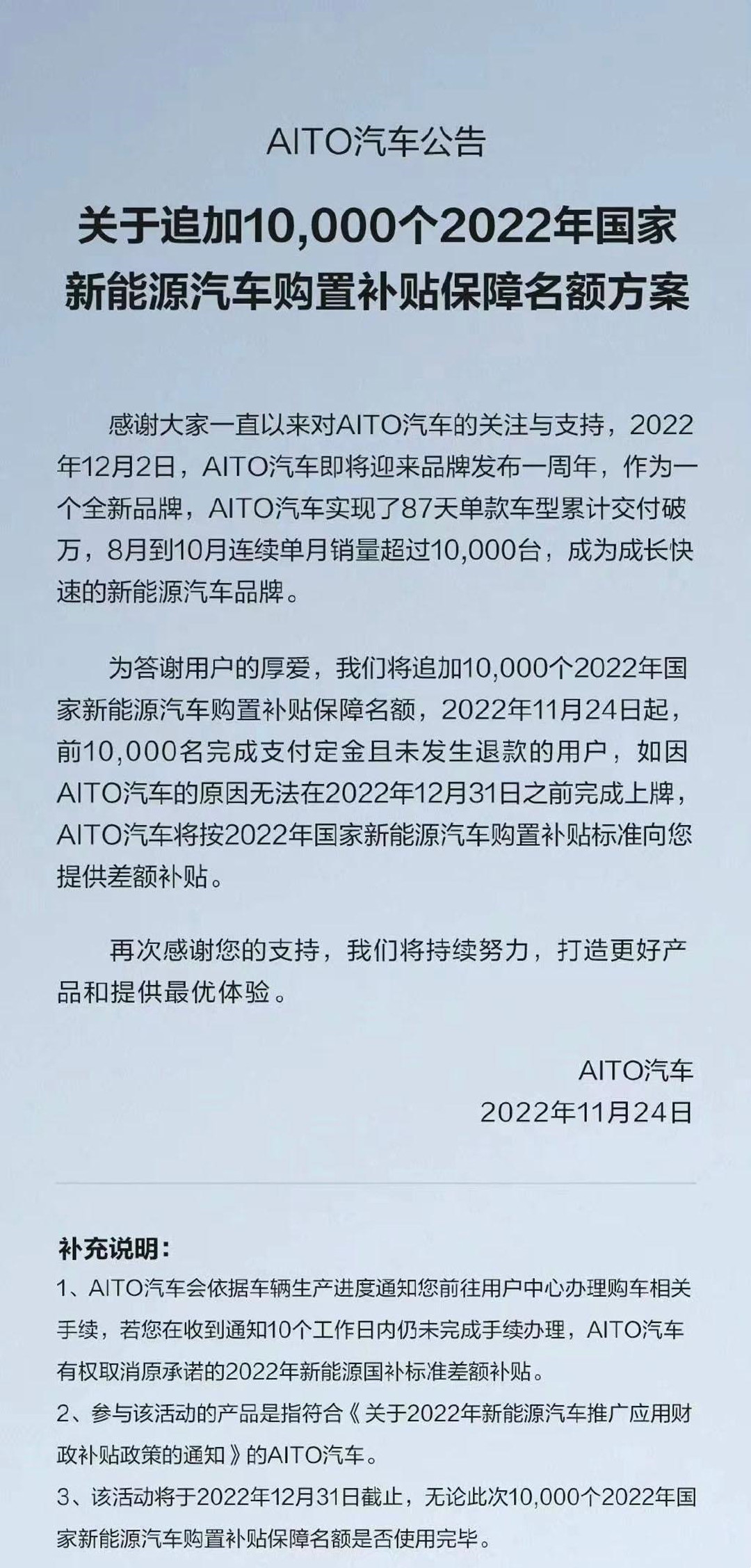 小鹏承担上牌时间导致的补贴差额,而超过30万的岚图也给到了3万元的补贴,问界就追加1万个补贴保障名额。