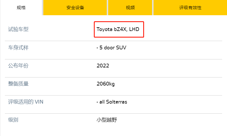 值得一提的是,由于斯巴鲁SOLTERRA与丰田bZ4X为姊妹车型,因此斯巴鲁SOLTERRA的测试结果会是以丰田bZ4X为测试车,官方表示后面也在进行了额外的测试之后,才正式确认斯巴鲁SOLTERRA的整体评级。