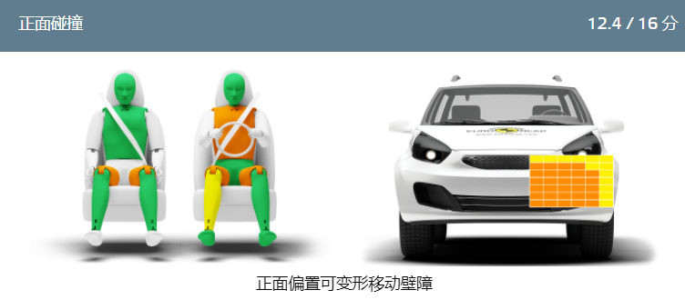 因此,正面碰撞测试满分16分获得12.4分的成绩,但对驾驶员的胸部以及腿部会有一定的几率造成伤害。