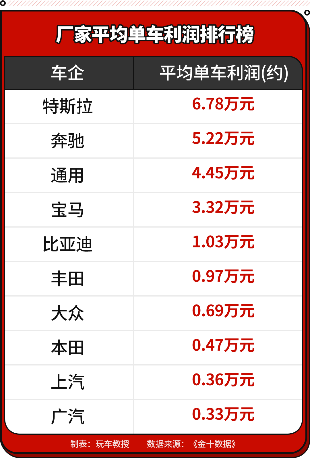 作为对比,丰田汽车的单车利润为1391美元(约合人民币9713元);本田汽车的单车利润为668美元(约合人民币4665元);大众汽车的单车利润为957美元(约合人民币6683元);吉利汽车的单车利润为372美元(约合人民币2600元)。