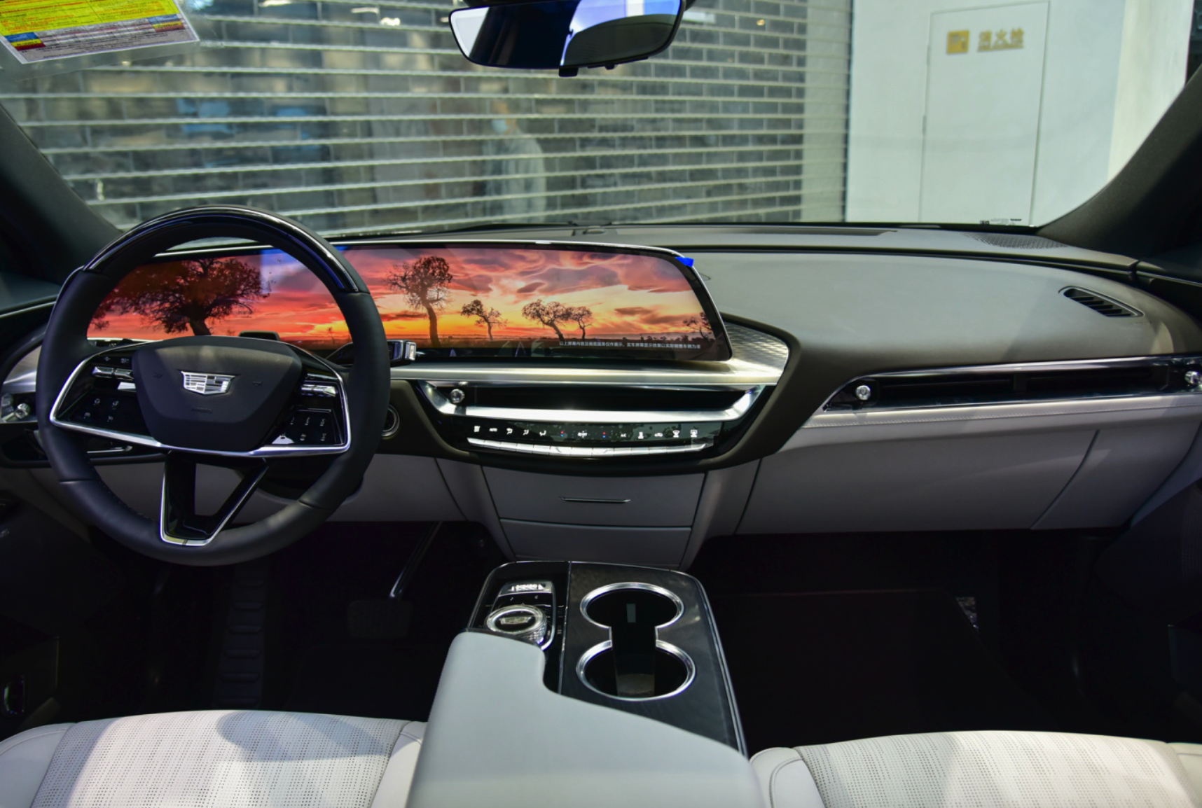 由于本次不是试驾,还不好说锐歌开起来是怎样,但就看得到的部分而言,外观自不用说,内饰一块 33 英寸、显示精度 271PPI 的 9K 分辨率环绕曲面屏,内置高通骁龙 8155 芯片。屏幕划分三区:最左边的功能区(仪表、电量、地图),中间的仪表盘,最右边的车机系统。但从个人的静态体验来看,一方面是这套屏幕的软件本地适配还需提升,第二就是语音识别系统相对于新势力还有距离。这些东西OTA升级并不困难,希望凯迪拉克之后积极跟进。