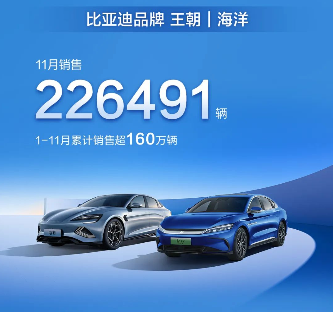 令人麻木的是,比亚迪长期霸占着新能源汽车销冠宝座,让这个备受瞩目的位置变得毫无悬念,今年11月份的销量也仍是如此。