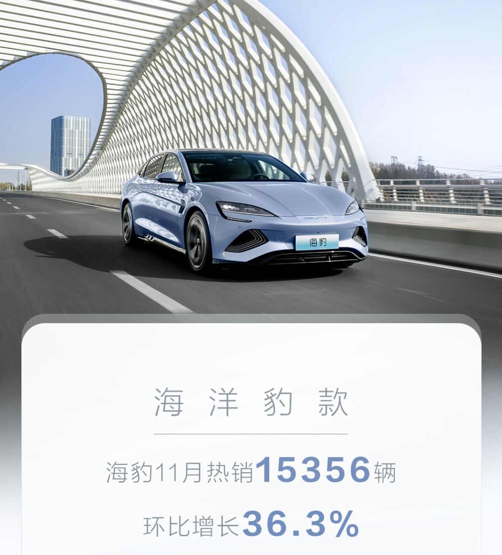说实话,在海豹正式发布之前,教授只是佩服比亚迪的勇气,但并不像大多数人那样看好它的销量,但它上市以来的销量表现确实超出了教授的期待值。11月份,海豹取得了15356辆的销量成绩,环比增长36.3%。