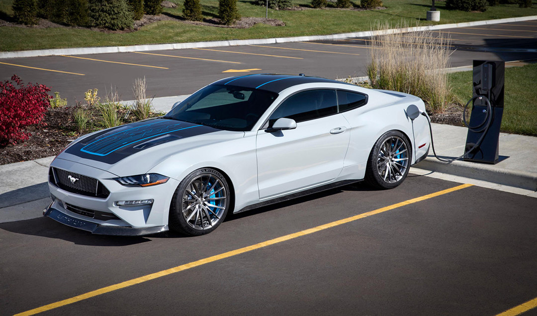 福特在2019年的SEMA改装展上就推出了这么一台作品——纯电动力系统+手动变速箱的Mustang。