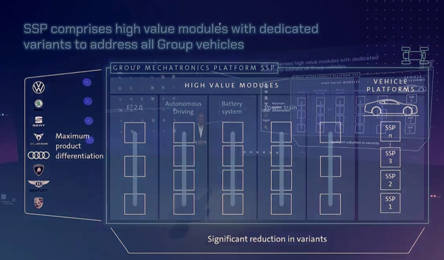 如教授在前面所言,这三个平台都是迪斯为了扣成本才诞生的过渡性产物,在迪斯眼中,真正能够决定大众集团未来命运的大招还得是SSP平台。按照规划,这个被迪斯报以厚望的新一代平台将在2024年正式启动,并且在2026年正式落地。