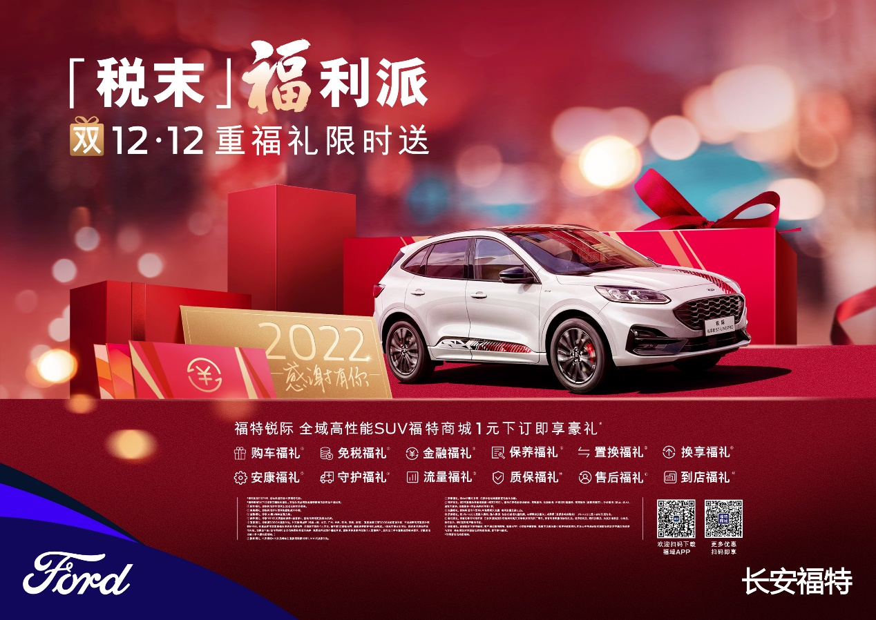 与此同时,长安福特同步推出年终感恩盛惠,即日起至12月31日,福特商城1元下订福特锐际,即可享12重福礼限时送*,包括购买活动车型即享2,000元购车消费券的购车福礼、至高7,000元的置换福礼、购置税减半补贴的免税福礼、6年免费娱乐流量的流量福礼、售后零件终身质保的售后福礼等,涵盖购车、用车、养车全周期,助力年轻用户轻松享全域高性能SUV。