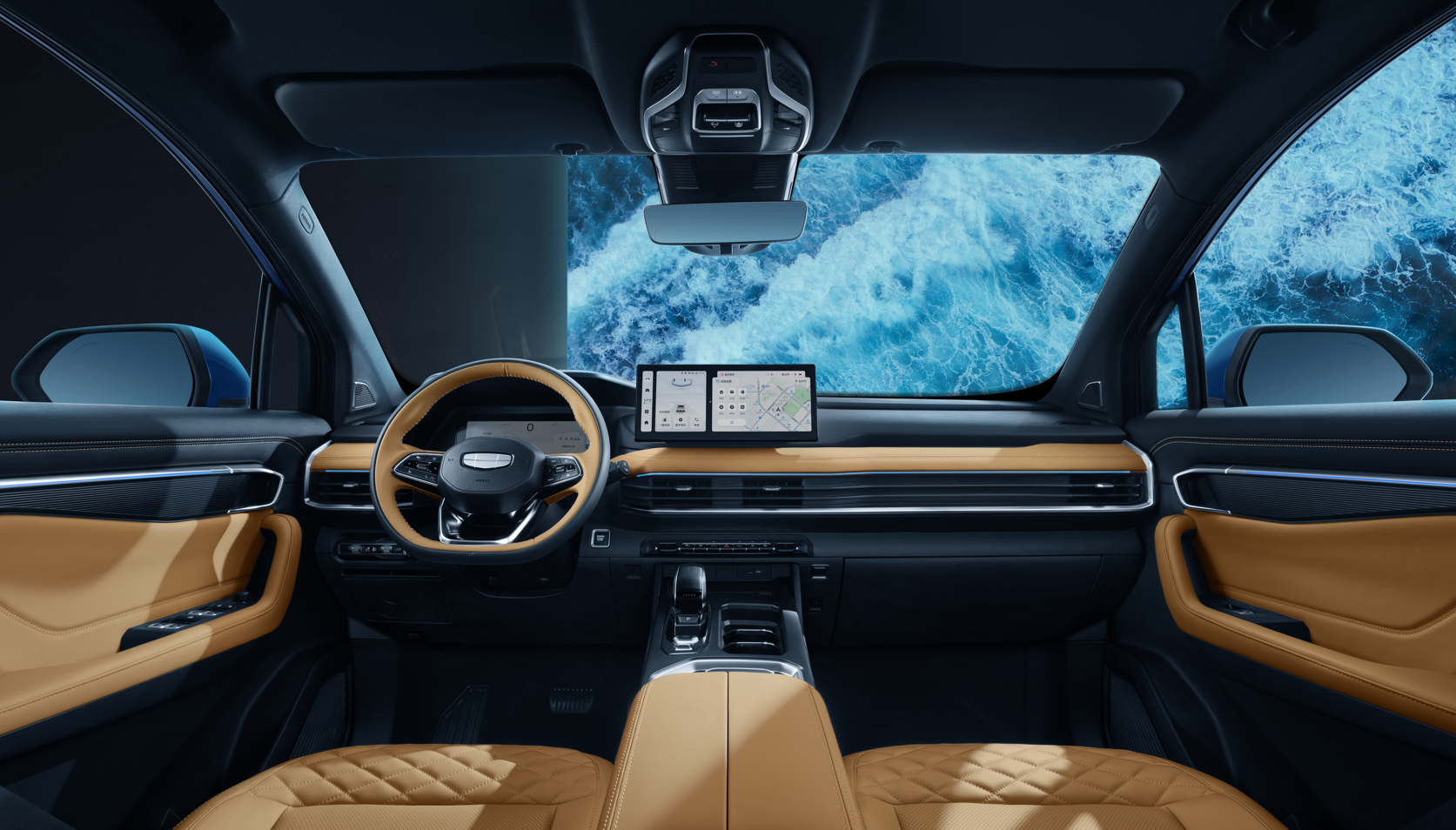 在内饰设计上,豪越L同样凸显大视野、大格局。云端全景座舱通过同级最高坐姿设计,配合全景车窗及60英寸巨幕全景天窗,再加上同级最大23.7°前挡上下视野角与同级最小2.8°A柱障碍角,使整车的观看视野相比同级大20%,带来360°全景体验,天地美景尽收眼底。在内饰风格上,豪越L提供了大漠棕与云杉绿两种内饰配色,以天地之色装点座舱,浓郁的自然气息扑面而来。