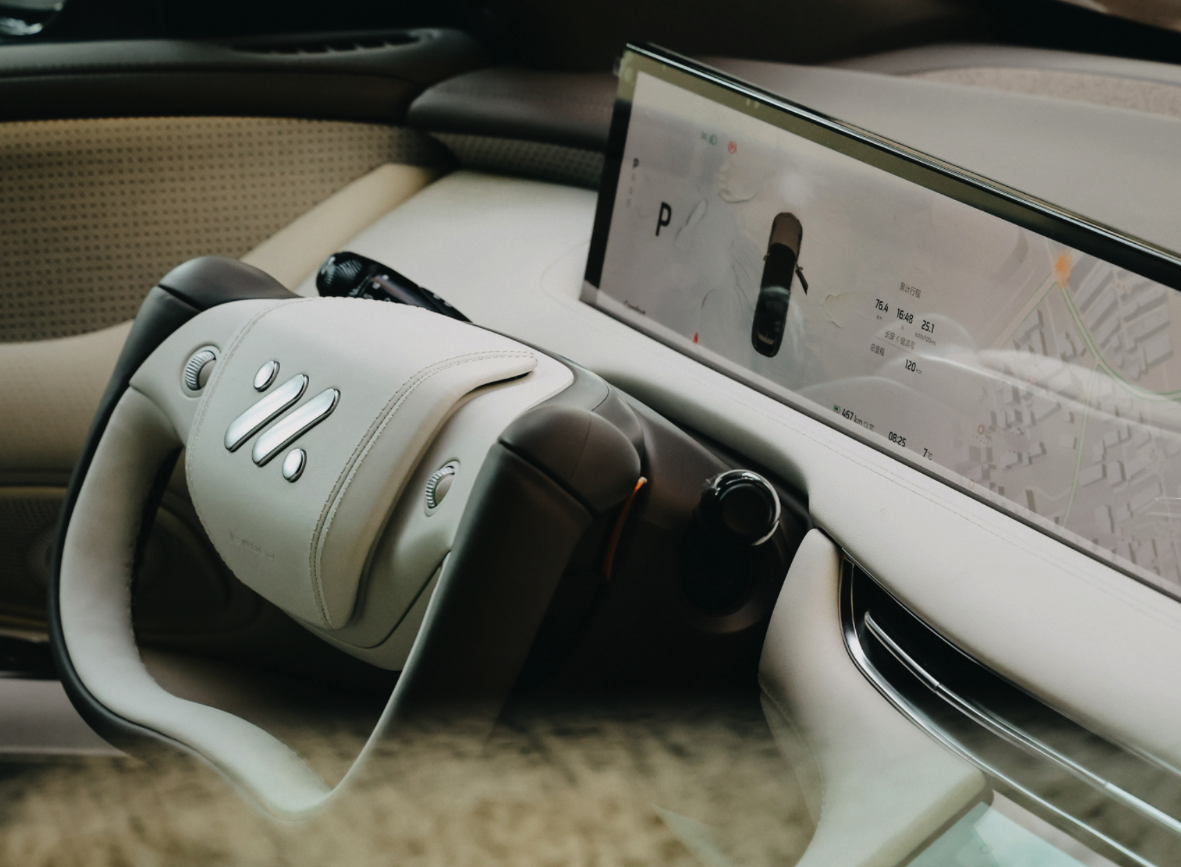 虽然配备了半幅方向盘,但智己LS7的线控方案还在研发的路上,而之所以仍然选择这一方向盘造型,更多是为了满足用户对于驾控的刺激观感。