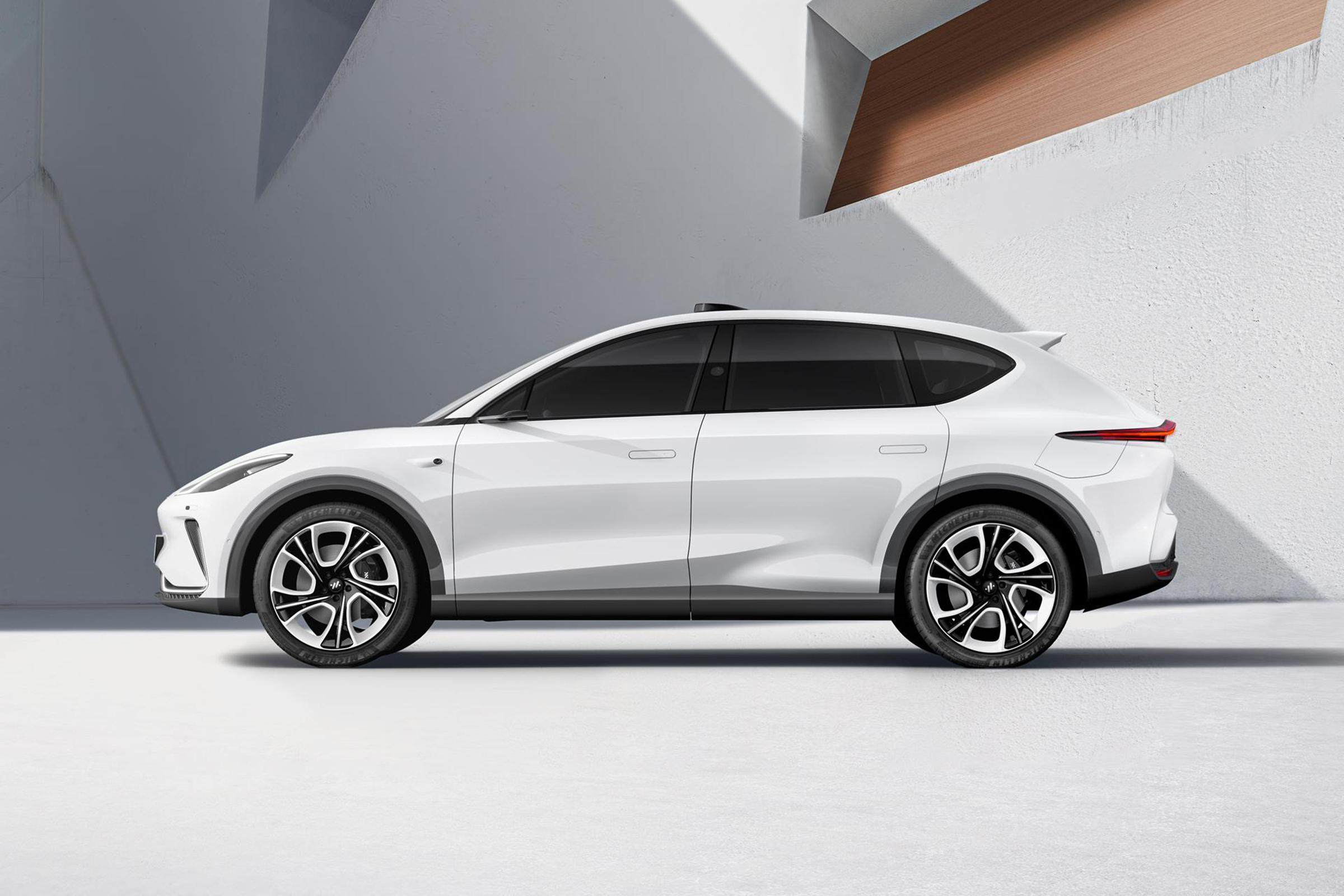 新车在外观部分上的造型设计都延续了此前的概念版车型的风格,十分富有新能源范。封闭式的前脸设计、两侧不规则造型的前大灯、“L”样式的日行灯、隐藏式门把手以及低风阻轮圈均在透露其新能源车型的身份。