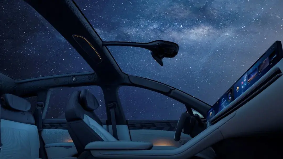 智己LS7还配备了穹顶式前挡风玻璃,挡风玻璃延伸至车顶,拥有100度的超广视野,视觉感受非常震撼,也同样能为驾驶员提供充足的光线。