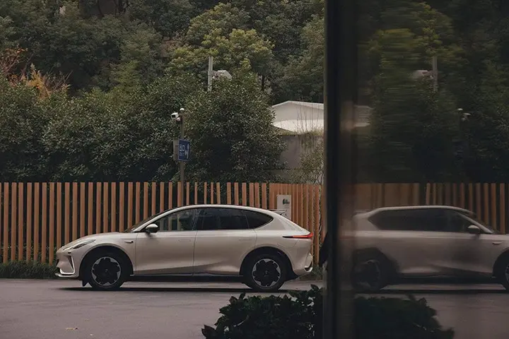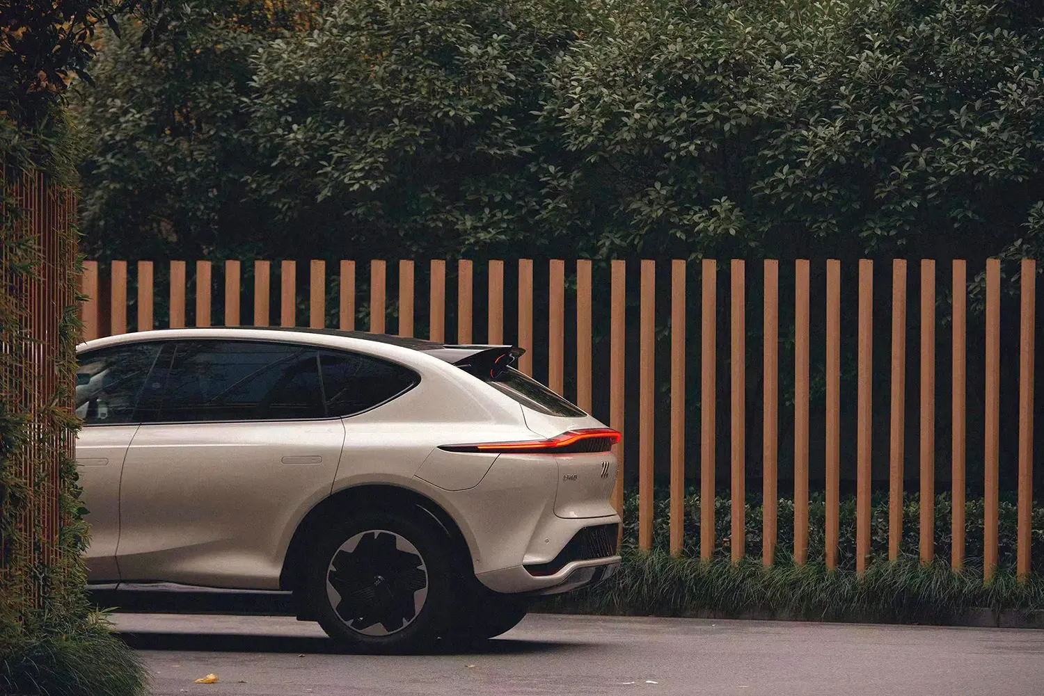 较为低矮倾斜的机盖、带分段式通风口的前下包围以及车尾大尺寸的车顶扰流板使其具备了一定的运动气息,智己LS7的贯穿样式且起伏状的尾灯组也有几分阿斯顿·马丁DBX车型尾灯组的味道。