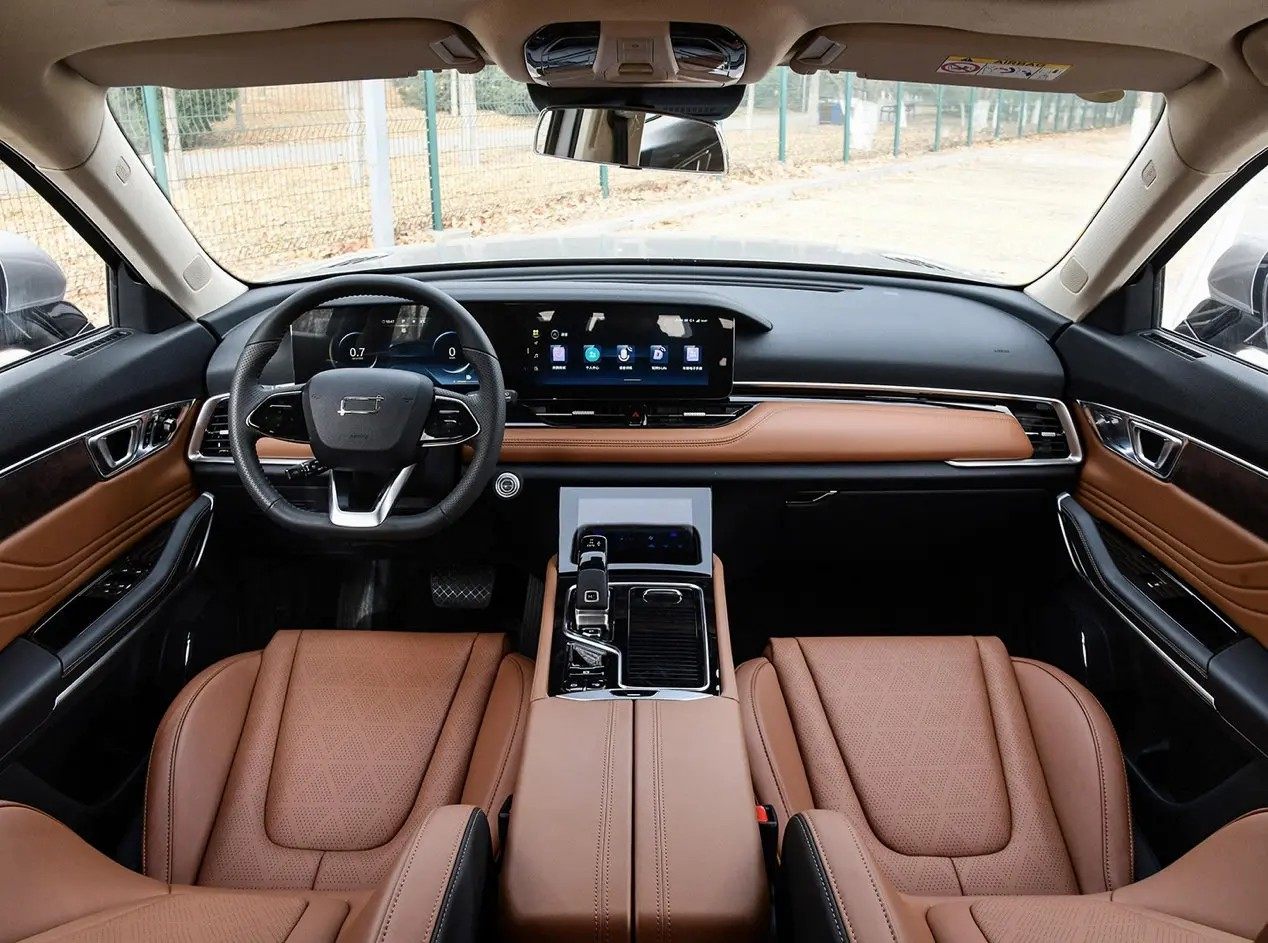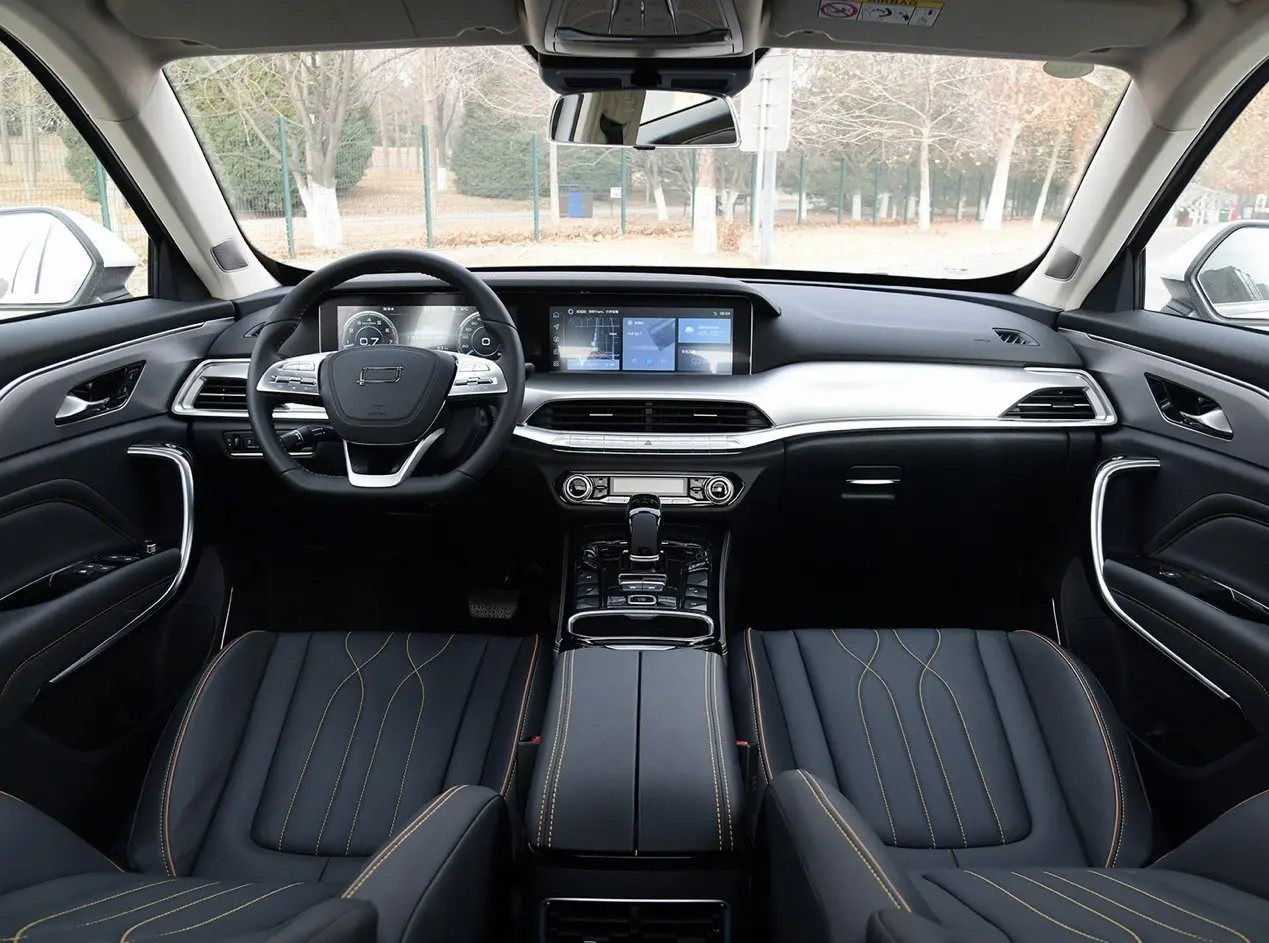 内饰方面,新车新车则延续了旧款车型的布局及设计,双12.3寸液晶屏(仪表盘+中控显示屏)+7寸液晶触屏式空调控制面板的三屏设计带来了不亚于同级其他竞品的科技氛围,新车方向盘上的按键升级为触摸式,同时还配备一个手柄式的电子排挡,加上质感不错的内饰包裹材质和双色拼搭设计,整体表现属于同价位车型中的上等水准。