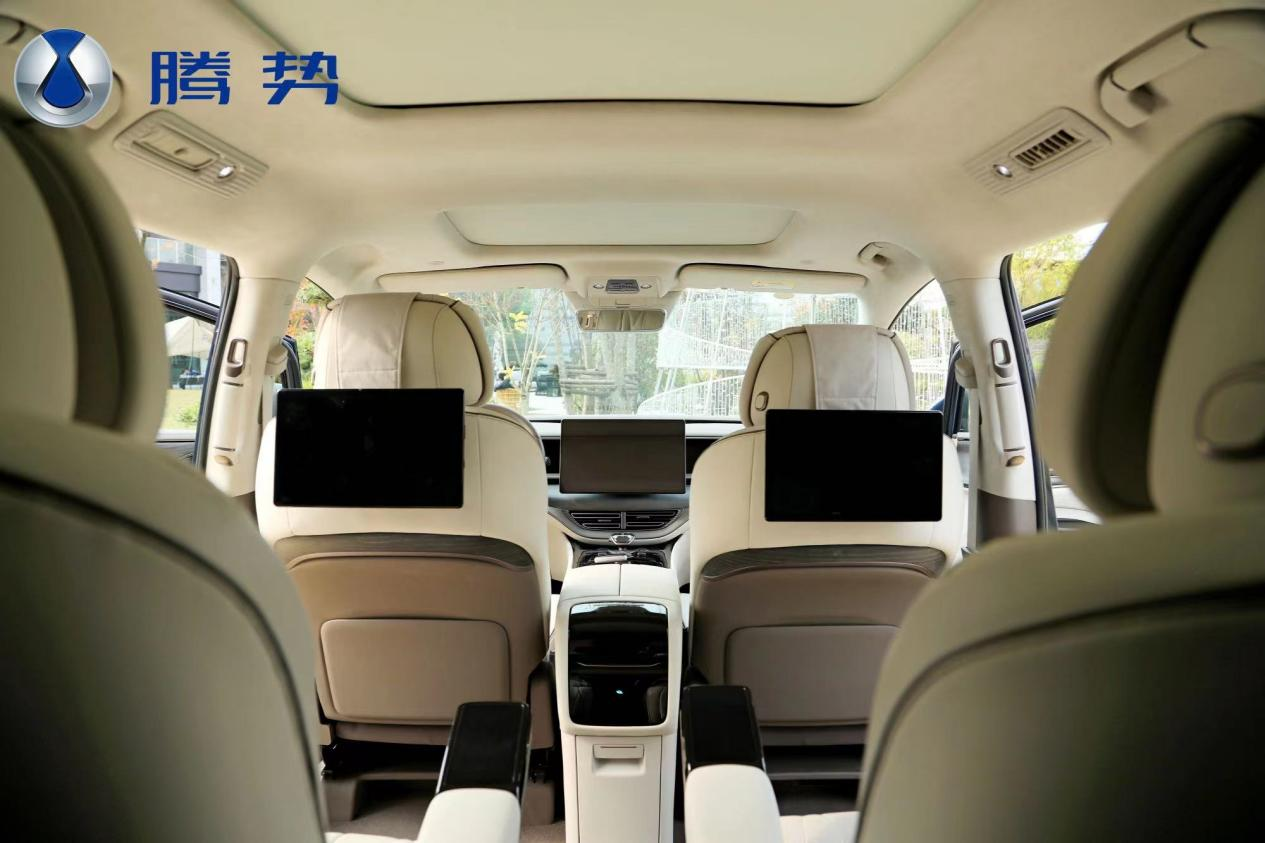 腾势D9特有的超大无差别7座驾乘空间,采用2+2+3的空间布局,配备中排同级最长电动滑轨、超大第三排空间,灵活可变第四空间,将MPV的空间优势发挥到极致;同时,专属迎宾功能、同级最大天幕、128色隐藏式律动光幕、智臻魔方、负离子主动式香氛系统、太空级静谧空间等越级配置,让乘坐体验达到最佳;腾势Link超智能交互座舱,搭载高性能5G网联系统,支持七屏互联,全场景智能语音及多种模式场景一键即享;腾势Pilot 高级智能驾驶辅助系统,拥有24个传感器,更有RPA遥控泊车、HWA高速公路辅助、ICC智能领航系统,让驾驶安全无忧;车身以五星安全标准打造,全车标配9个安全气囊,多方位保护整车七座乘客安全。