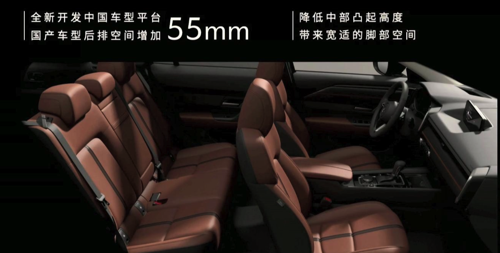 事实上,这次马自达在产品策略上确实有了变化,其中国产版CX-50相对海外车型就在后排增长55mm,并且降低了中央地台的凸起程度,以换得更宽裕的乘坐空间。