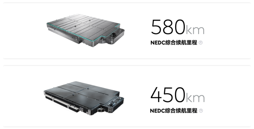 此外,新车将配有75kWh/100kWh这两款电池组方可供消费者选择,在CLTC工况下续航里程可达到450km和580km。