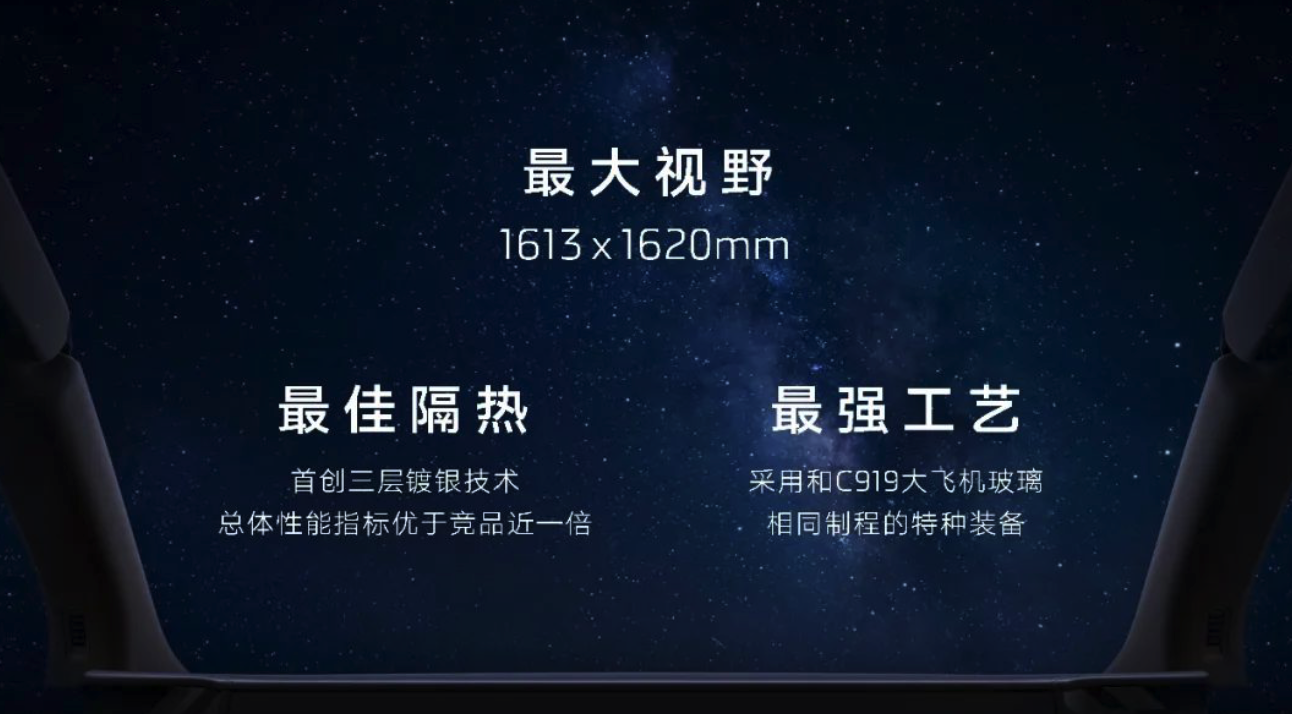 另外官方强调,这款超大面积的全景天幕采用了首创的三层镀银技术,隔热能力指标对比竞品高出了近一倍,这点多少能够打消到用户的担忧。