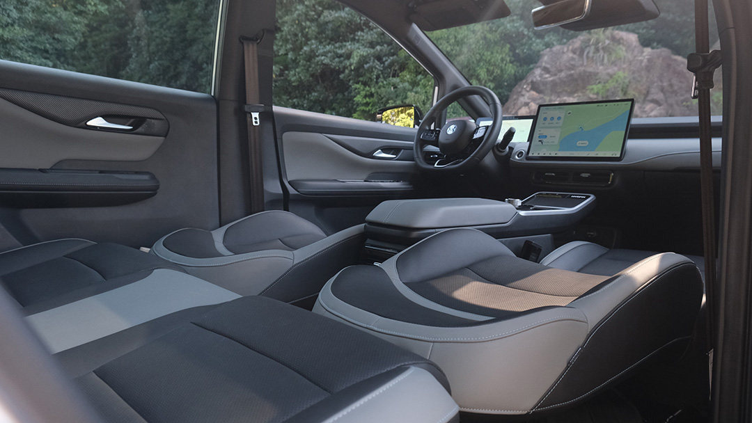 另外它还能放倒前排座椅,与后排进行连接,形成了一个极为夸张的休息空间,若是加上官方的投影仪设备,车内看电影那是绰绰有余。