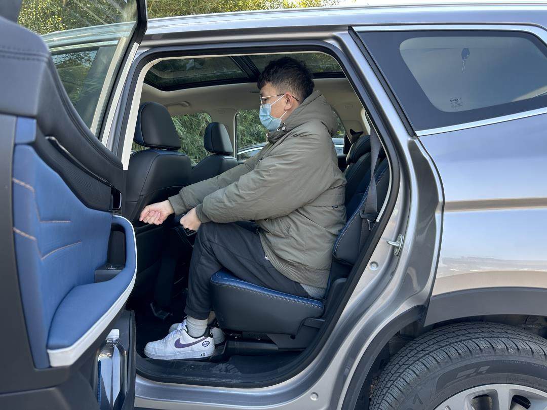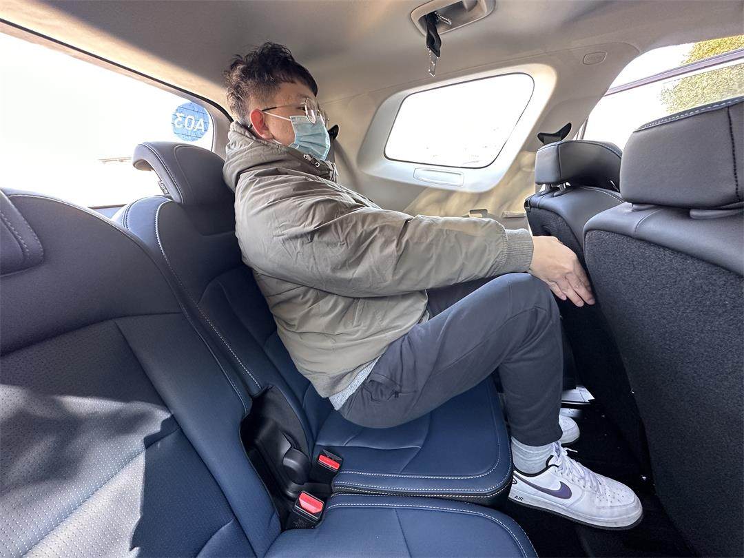 而把座椅调至最前面时,腿部空间大概四指左右,调至中间位置时,第三排空间也非常可观,像教授这种近1米8、140斤的成年人坐起来都毫无压力,和丰田汉兰达的体验非常相近。