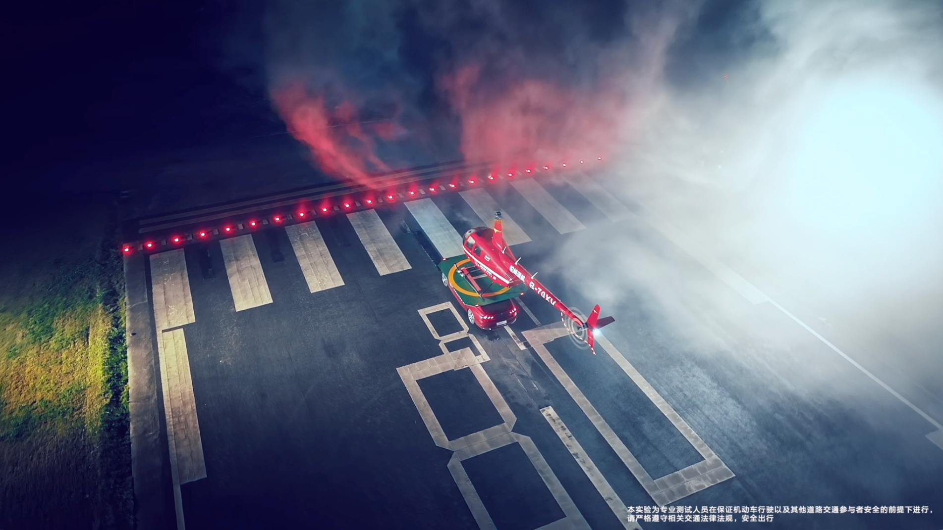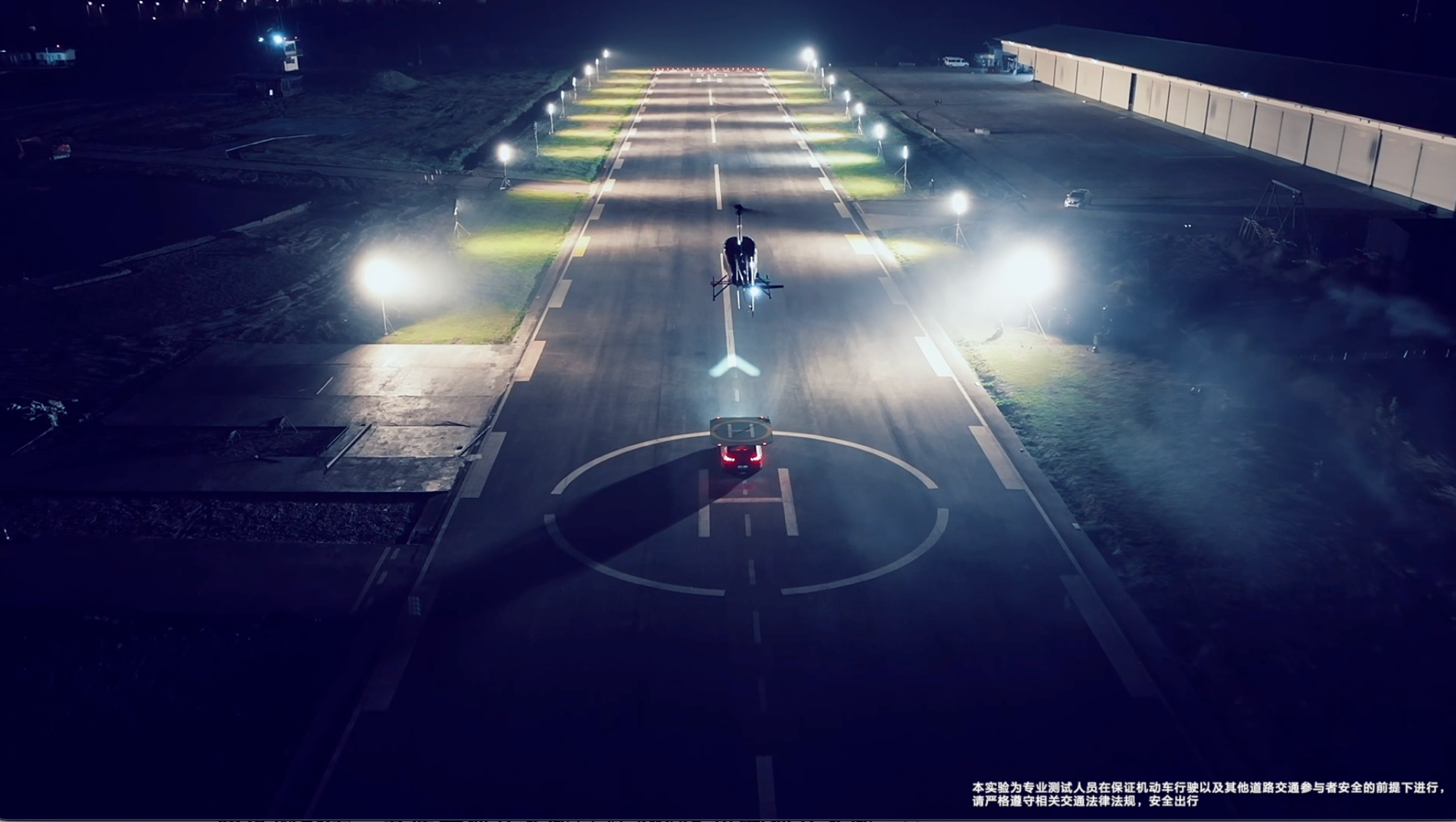 最后,在驾驶着东风标致508L对直升飞机完成了一系列的追逐、加速和刹车后,直升飞机在指定位置,成功降落在东风标致508L顶部装置的停机平台上。