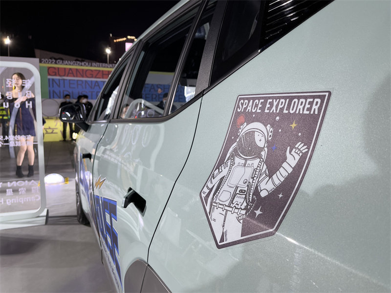 在外观上,如图所示,这台新车做了拉花处理,在一些地方喷涂有“太空探索者”的标记。除此之外呢?没了,这就是这款新车仅有的改动。看到这里你也许会说了,广汽埃安这是不是诚意不够啊?这就是新车了?别着急,可能从文字上表达,这台新车确实不如“正常的新车发布”那般,充满着各种改动,各种产品力升级。但我们在现场所见的情况,却完全不同。