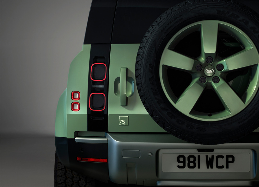 新车还在车身上加入了75th Limited Edition的专属纪念标识,20英寸的轮毂也采用了与车身同色的设计,其中还包括了外挂的全尺寸备胎。