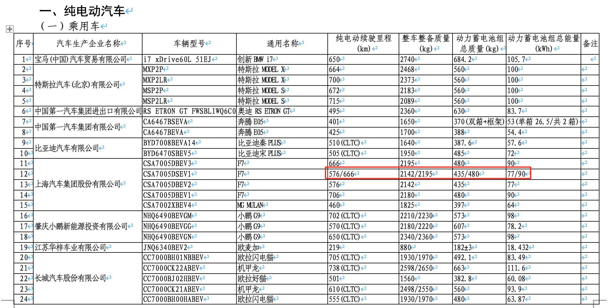 此次申报车型最大的亮点在于,飞凡F7推出换电版本,配备的是三元电磁组。而根据《免征车辆购置税的新能源汽车车型目录(第59批)》信息显示,换电版本分别配有能量密度为77kWh和90kWh电池组可选,最大续航里程分别为576km和666km。