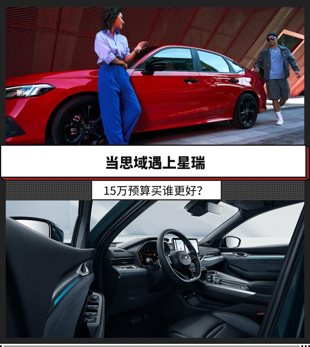 思域是运动轿车的标杆产品,拥有良好的口碑和庞大的用户群,国内用户也已超200万;且轻巧好开、经济实用、保值率俱佳。星瑞有吉利和沃尔沃背书,并且凭借优雅设计、CMA架构、全系2.0T动力等优势,成为车坛黑马。15万的预算,可以延续对本田思域的信仰,也可以追求吉利星瑞的性价比。至于怎么选,我想不同的人,会有不同的答案。