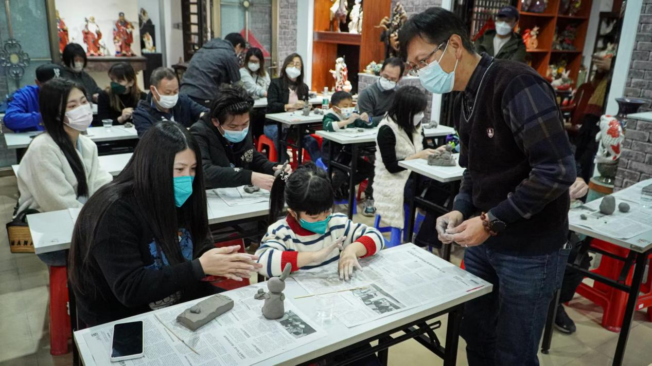 了解了历史之后,在黄大师一番耐心的指导下,一家人便开始一起在现场DIY了兔子公仔,寓意明年兔年扬眉“兔”、气大展鸿“兔”,到时烧制好的作品会送到大家手里。大人们都表示虽然制作过程比想象中有难度,但却回忆起童年,深切地体会到了这项传统技艺,而且能与孩子共同完成,培养沉下心来的耐性,其乐融融。