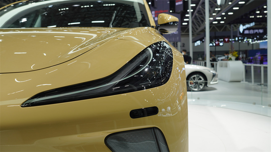 车身侧面没有明显的腰线,车顶镂空的尾翼性能范十足,且终于搭载了激光雷达,这是L7所没有的配置。