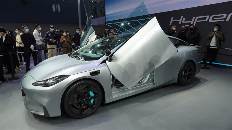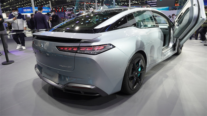 在车展现场,广汽埃安首发亮相了旗下四门5座GT纯电车Hyper GT。该新车基于广汽埃安最新一代车型平台AEP3.0打造而来,同时也是埃安品牌第一款采用“爱神箭”全新LOGO的新车。目前该车价格尚未公布,不过大家请看上图,看到这台车的鸥翼门了么?考虑到鸥翼门的巨大成本,我们猜测,这台车的最终售价,极有可能在35万或以上。
