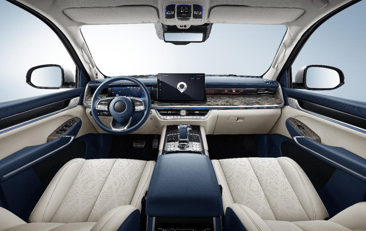 山海炮车身采用宽体豪华设计,乘用姿态比例更加协调而宽适,5440mm*1991mm*1924mm的超大车身,以及3350mm超长轴距,确保宽敞阔绰的驾乘空间。打开车门,高级商务座舱豪华气场,扑面而来。山海炮内饰大面积采用软质包覆,配备方向盘加热功能,以及14.6寸中控屏、12.3寸仪表,实现视觉、触觉双重豪华体验。