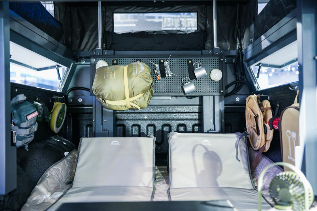 后车箱还预留24个矩阵式锚点,给用户多种拓展可能,打造真正的超好玩万能改装车;配备高位制动灯,集成双角度照明设计,全面提升车箱使用便利性;车内车外双220V电源接口,满足各类小型电器使用,无限拓展户外新玩法。