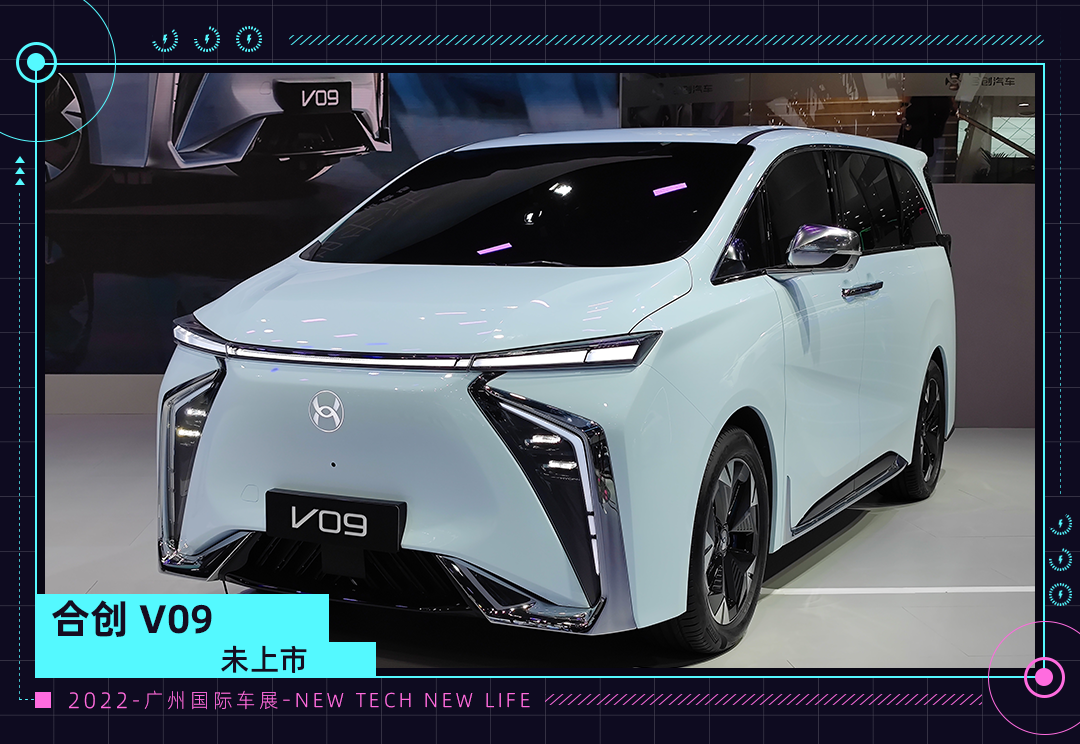 V09基于此前的合创Concept-M概念车进行打造,外观造型棱角分明,显得十分的夸张。