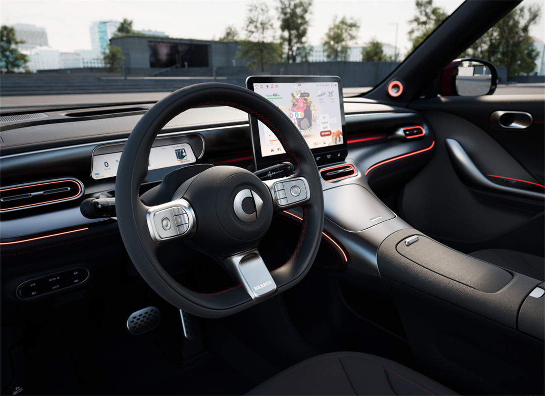 新车的BRABUS版本会采用20英寸的轮毂,车顶为黑色的双色搭配,包围的造型变得更加动感,且各个面上都会带有专属的红色线条和BRABUS徽章,刹车卡钳也会被喷成红色。