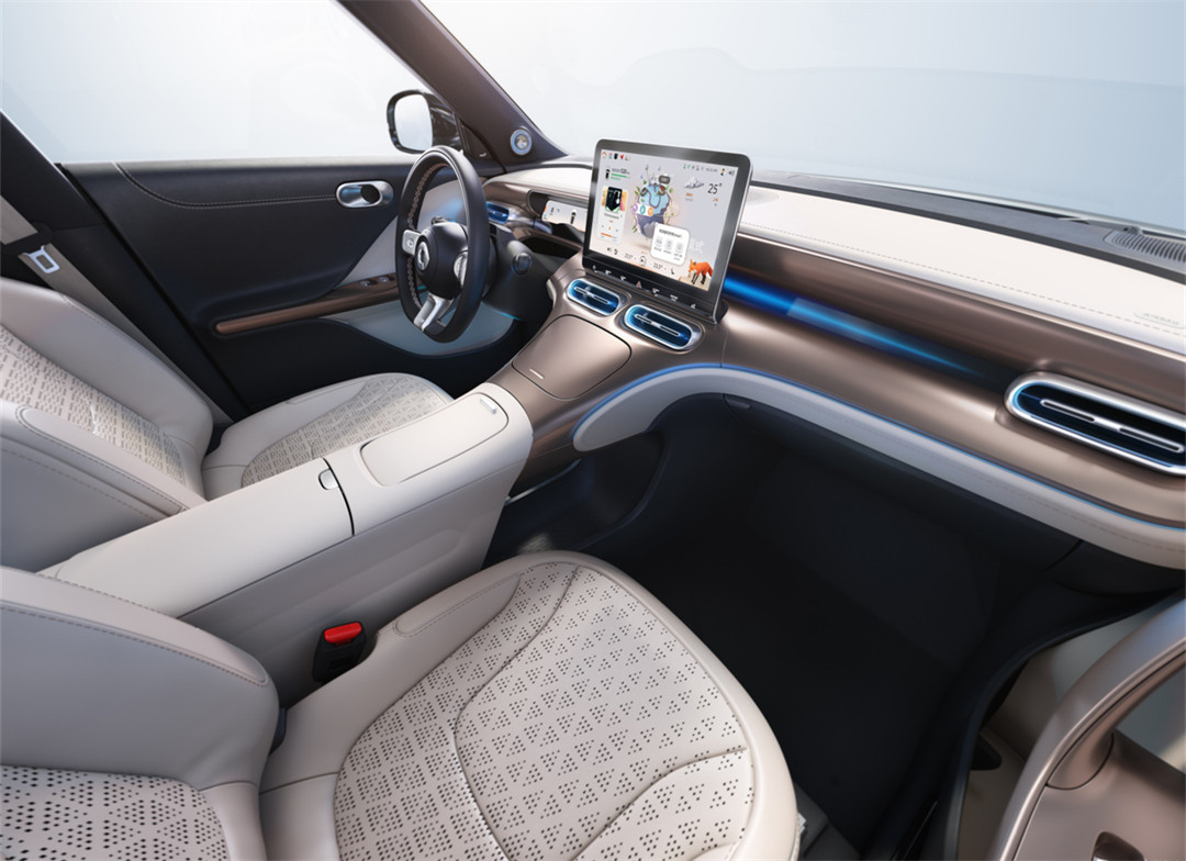 整套内饰有着浓浓的奔驰味道,精灵#1的门板用料其实能看出一定的成本控制,而定位更高的精灵#3有望能更加精致。