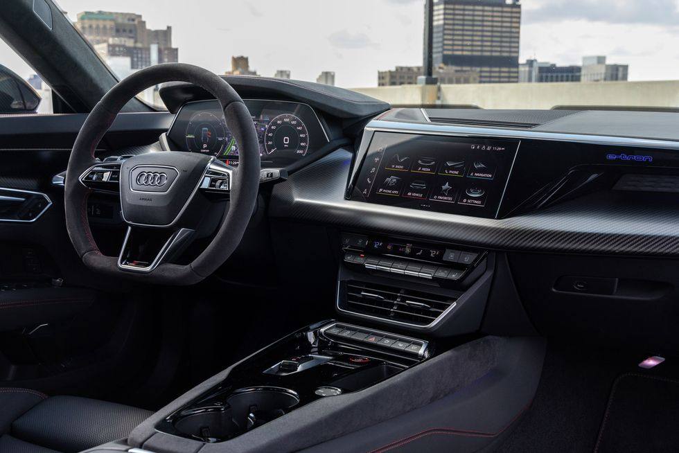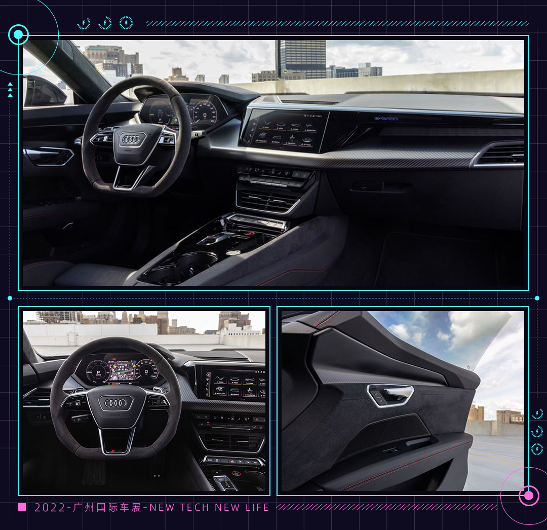 进入车内,数字化的座舱布局是当下新能源车较为主流的设计,奥迪RS e-tron GT也同样不例外,分别配备了12.3英寸的液晶仪表盘、10.1英寸的中控触摸屏以及三幅式的多功能方向盘,简约的科技美感将奥迪科技宅的形象展现得淋漓尽致。
