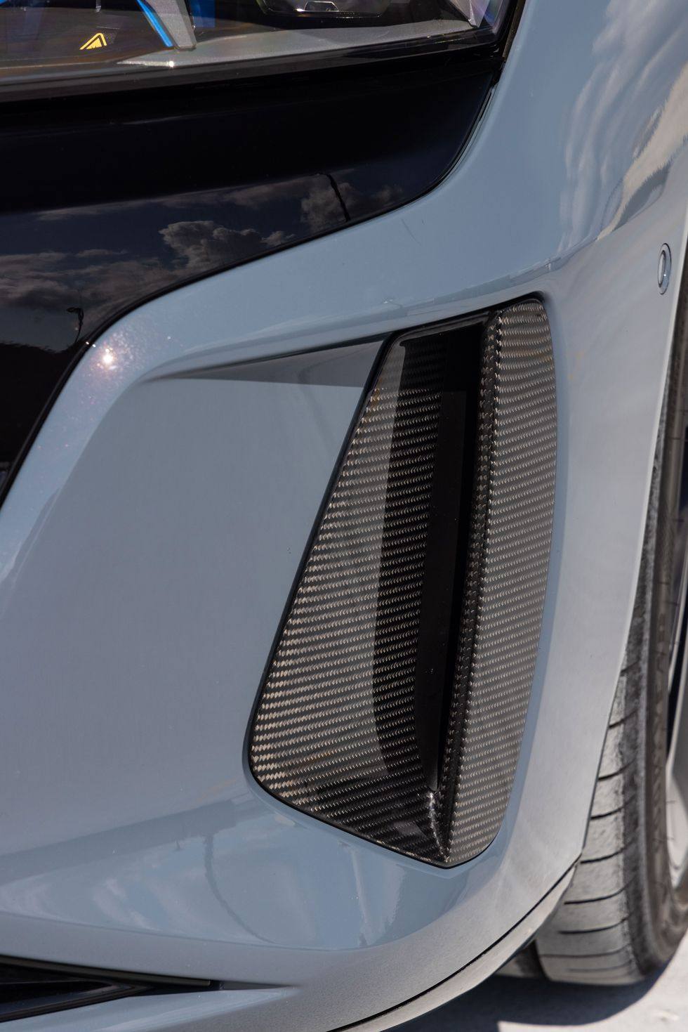 小结,事实上奥迪想要RS e-tron GT这款车型更多地往GT的方向发展,而在细节上的点缀,如碳纤维的进气口、后视镜、后扰流扩散器等等,通过以小见大,隐喻RS e-tron GT高性能的地位,要的就是西装暴徒这种调调。