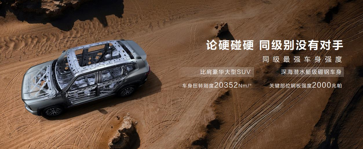 面对越野路况时,哈弗H-DOG拥有深海潜水艇级的硼钢车身,关键部位钢板强度2000兆帕,高强度钢占比74.2%,扭转刚度达20352Nm/°,不仅可以降低碰撞时的风险,也充分保障了越野时车身结构不会变形。