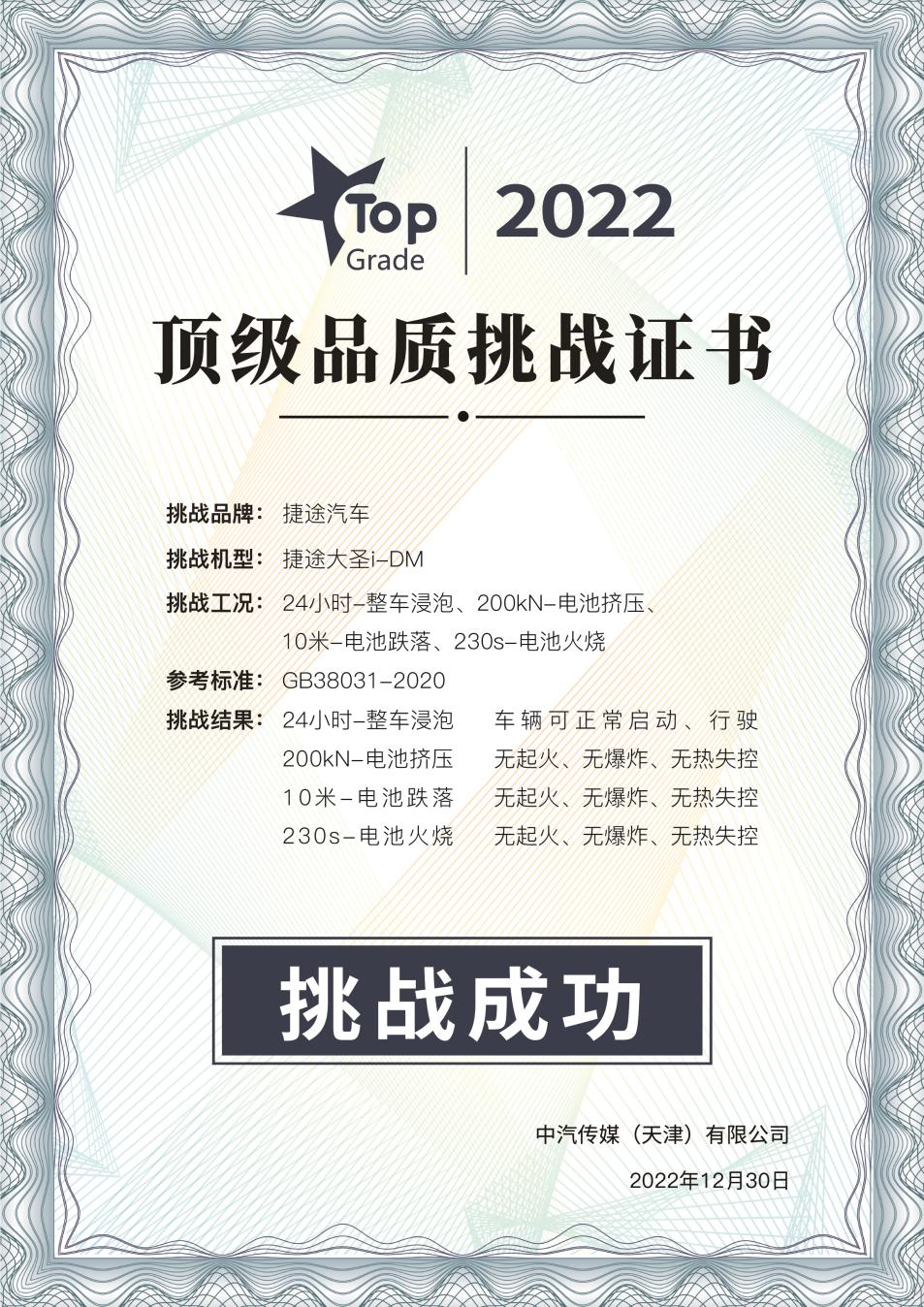 近日,捷途汽车为了打消用户对于电池安全的重重顾虑,在中汽中心实验室对旗下PHEV车型捷途大圣i-DM的电池包进行了浸水、跌落、挤压和火烧四项“炼狱测试”,以数倍于国标的严苛手段仍未触及电池安全的极限,给用户传递了足够的产品信心。值得一提的是,行业内电池安全测试通常只测电池包,而本次捷途大圣i-DM的“炼狱试炼”则是态测国内首次放电状电池安全,将电池包与整车连线,在车辆启动状态下进行测试,此时电池包处于放电状态,电池更为敏感,测试条件更为严苛,也更贴近实际用车场景。