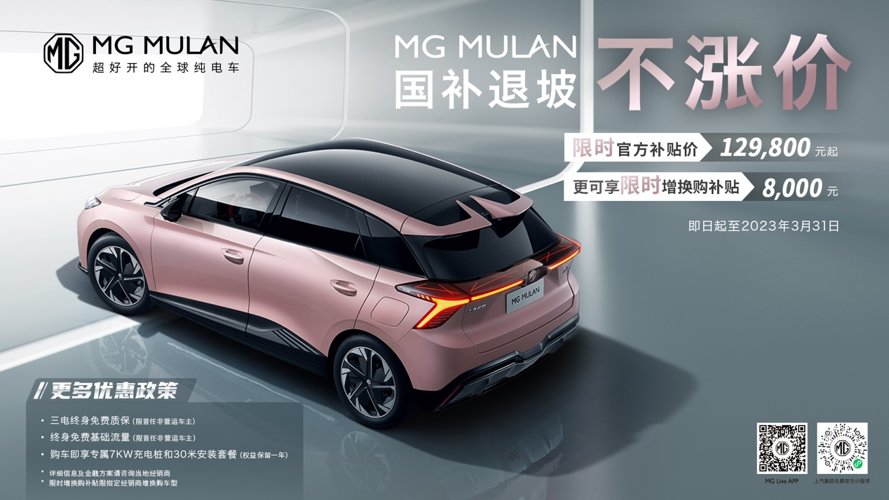国补退坡不涨价,MG MULAN限时官方补贴价129800元起